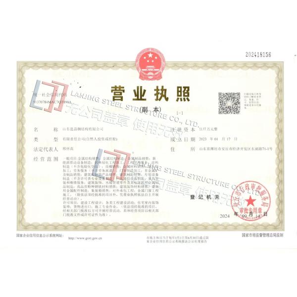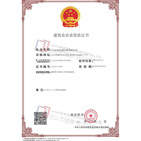At our company, we take pride in our comprehensive and robust credentials that position us as a leading player in the steel structure construction industry. We possess a complete set of certificates, including a business license and a qualification certificate for construction enterprises, which serve as the foundation of our legitimacy and capability. Moreover, our adherence to the highest international standards is evidenced by our successful certification under the CE mark, a testament to our commitment to quality and safety.